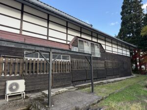 「雪囲い」もその一つです。積もれば何トンという重さにもなる雪から建物を守るための、窓や玄関を補強する作業です。雪に埋もれてしまうと壊れてしまったり、雪を片すときに危ないものを蔵にしまったりもします。(そのため、BBQ用のテーブル、ベンチ、イルミネーションも冬季は安全のため撤去しております。)